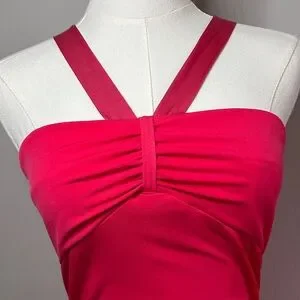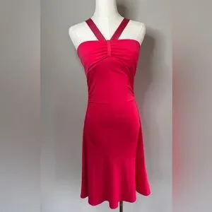 mall girl, mcbling juniors partydress clubwear halterneck crossback fit flare bombshell dolly dopamine flirty twirl going-out hoco fuchsia pink