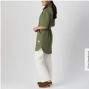 Pictures from Duluth website are just informational, the color of the duster for sale is paprika not green.