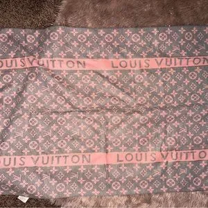New without tag . Elegant & beautiful shawl/scarf. Features pink and gray monogram design. Perfect for any occasion.