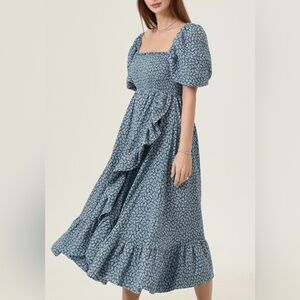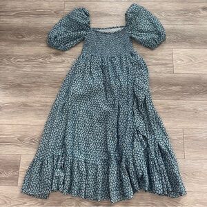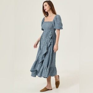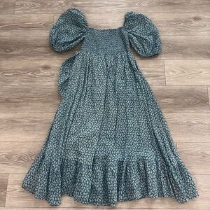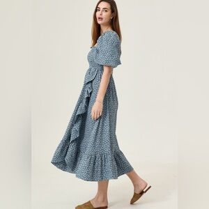 Bio-washed romantic flowy muslin gauze dress with smocked sleeves and chest. Perfect for before, during and after pregnancy. Unlined. Follow your pre-pregnancy size if you're pregnant.