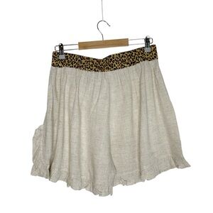 Umgee shorts, linen blend shorts, leopard waistband shorts, high waisted ruffle shorts, resort wear shorts, boho vacation shorts, festival outfit shorts, chic summer shorts, casual lounge shorts, feminine bohemian style, statement waistband shorts