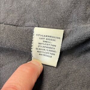 Chic charcoal jacket with unique asymmetrical cut. Includes two front pockets.