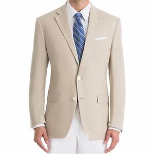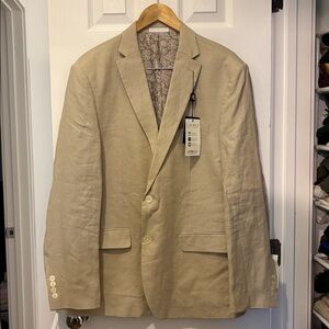 NWT Lauren Ralph Lauren Tan 2 Button Linen Blazer 44R