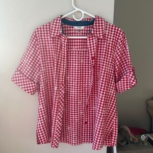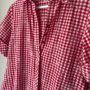 Alia Red and White Checkered Button down with Embroidered flowers!! 🍓