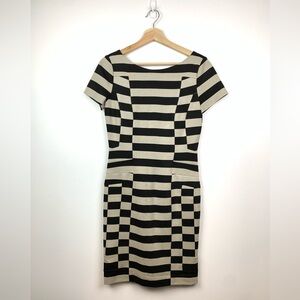 Diane Von Furstenberg Dress Kathleen Stripes Beige Black Sz 6 Short Sleeves DVF
