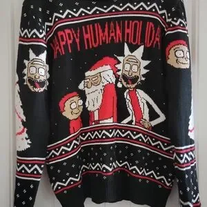 Rick & Morty Festive Black and Red Crewneck Sweater