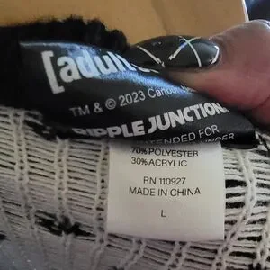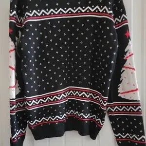 Embrace the holiday spirit with this playful black and red crewneck sweater. Perfect for adding a fun touch to your winter wardrobe.