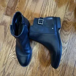 Step out in style with these sleek black leather ankle boots. Perfect for any occasion, these boots offer both comfort and elegance. A must-have for your wardrobe.