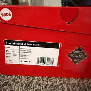 Experience comfort and style with these men's black athletic shoes. Perfect for everyday wear and sports activities. Dynasoft Nitrel v6 Gore Tex by New Balance. WIDE width