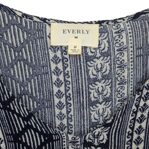 Everly Boho Flowy Romantic Peplum V-Neck Navy Cream Short Sleeve Blouse Medium