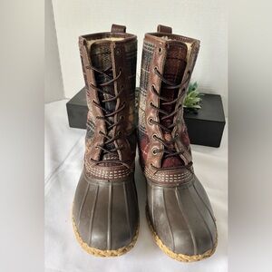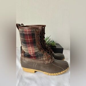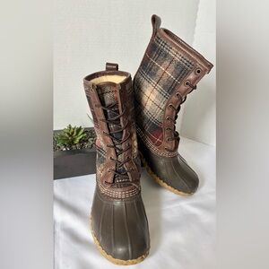 L.L. BEAN PLAID SHEARLING LINED LACE UP DUCK BOOTS LEATHER UPPER SZ 8M