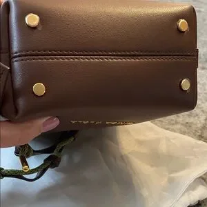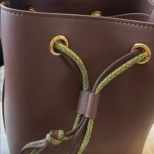 Bought in Spain last summer. So cute and versatile, the brown bucket bag is perfect for any occasion. Its sleek design and quality craftsmanship make it a must-have accessory. Bag included.