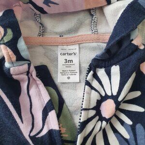 This Carter's hooded floral romper is in size 3 months and in very good condition with minimal wash wear.