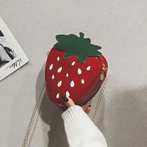 Add a playful touch to your outfit with this strawberry-shaped red crossbody bag. Perfect for casual outings.
