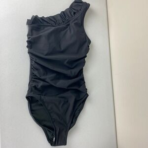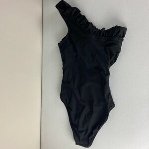 J. Crew Matte Ruffle One Shoulder One Piece Swimsuit Black Womens Size 6 NWT