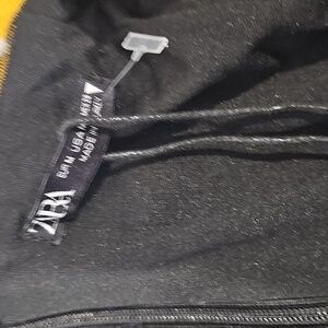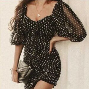 Zara Polka Dot Puff Sleeve Ruched Dress Black White Dots Sz M NWT MSRP $69