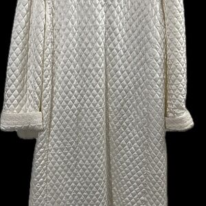 VINTAGE Christian Dior Ivory Women's Quilted Robe w Lace & Faux Pearl Buttons L