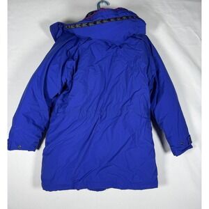 VTG LL Bean Jacket Womens Small Goose Down Parka Aztek Accents Blue Hooded 80s