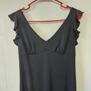 Vintage La Belle Black Dress Y2K V-Neck Ruffle Cap Sleeve Empire Maxi L 90s Y2K