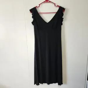 This is an authentic vintage La Belle dress from the Y2K era, featuring a flattering empire waist and feminine ruffled cap sleeves. The classic black color and flowy silhouette make it perfect for casual wear, events, or vintage-inspired outfits.