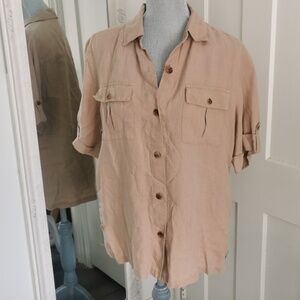 Evelyn & Arthur 100 % linen boxy safari blouse. Size L