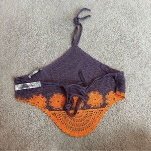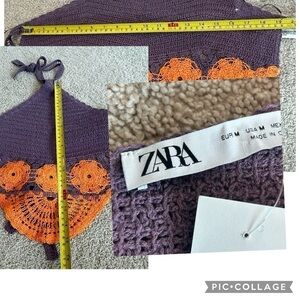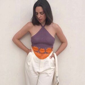 Zara purple orange crochet knit boho halter crop top NWT bohemian
