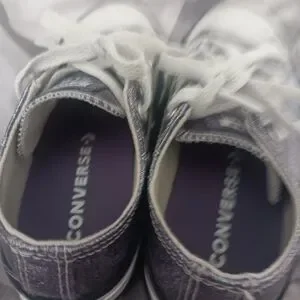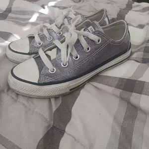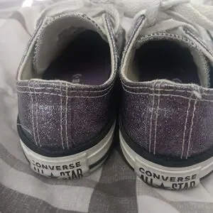 Shimmering purple sneakers with classic Converse style. Perfect for playful adventures.