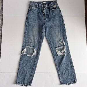 PacSun Women's Blue Ripped Straight Leg Jeans