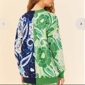 FARM Rio Green and Blue Floral Cardigan Sz M