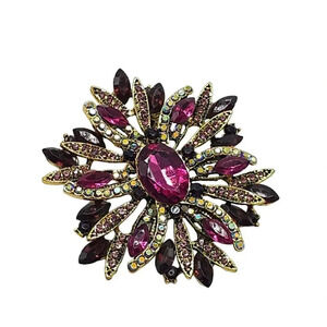 Aurora Borealis Rhinestone Purple Crystal Flower Brooch Pin Gold Tone Vintage