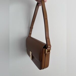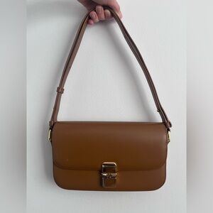 APC Grace Baguette Leather Handbag in Warm Honey Brown with Gold Clasp