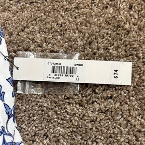 Fit and flare women’s dress featuring a beautiful blue floral pattern on a white background. Perfect for any occasion. Size 12 but fits like a 8/10, no stretch.