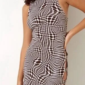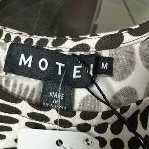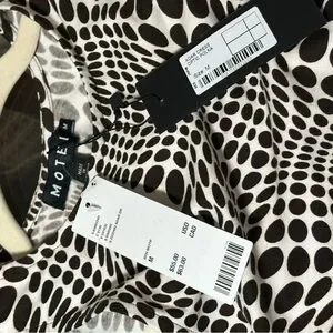 NWT Motel mini dress brown and white polka dots. size Medium has side cutouts.