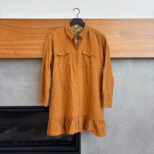 Pilcro Shirt Dress Button down Gold Tunic Babydoll, Size S