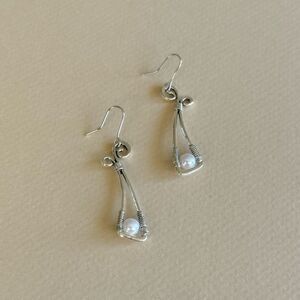 These elegant silver earrings feature a beautiful pearl accent, perfect for adding a touch of sophistication to any outfit.