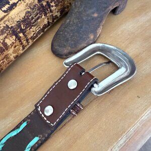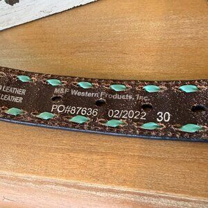 Woman's Western Belt with tooled Leather and Turquoise inlay Size 30