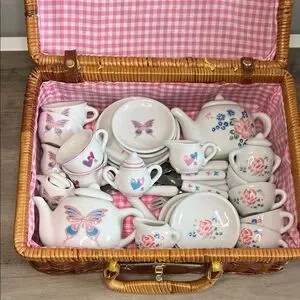 Vintage Porcelain Tea Sets Wicker Picnic Basket Kids Tea Party