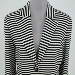 Exclusively Misook Sweater Jacket Women's Medium Black White Stretch Knit Vintage