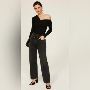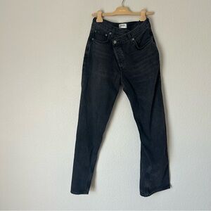A criss-cross waistline brings a fresh take to your favorite jeans in these weekend-ready pants by AGOLDE.Black denim (100% Organic Cotton). Jeans. Front button closure. 31" inseam. 11" rise. 15" leg opening. Imported.