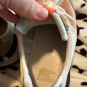 Sorel Kinetic Lite Lace Sneakers in:Sandy Tan w pink and burgundy accents