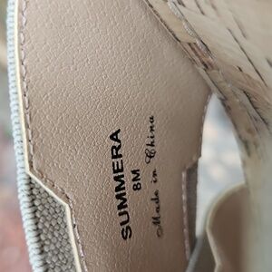 Like new condition- Donald Pilner gold crisscross platform sandals with gold accents, faux cork footbed, white rubber sole for comfort & grip. These are so cute!...wear them dressed down with jeans or dressed up with a nice dress! Size 8.