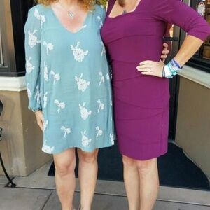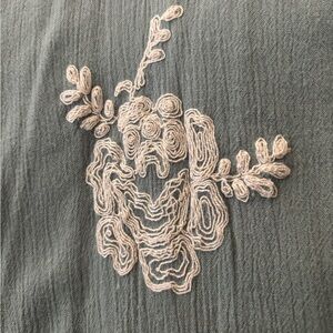Free People Green Long Sleeve Dress with Cream Floral Embroidery