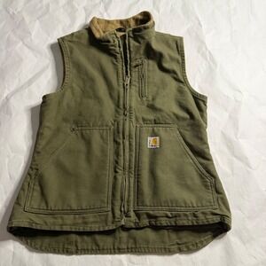 Carhartt VTG Womens Quilt Wool Lined Canvas Vest Olive Green Full Zip Work S