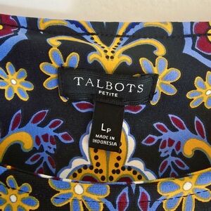 Talbots Paisley Sz LP Stretch Elegant Blue Black Gold Dress