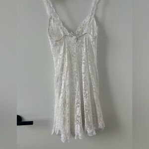 Vintage Secret Treasures White Lace Sheer Ruffle Mini Nightie Lingerie Dress