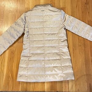 Straight fit, long sleeve, zip-up, woven 700 fill power down filled puffer jacket.