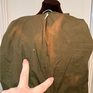 Excellent condition outside with the flaw inside - the inside lining is discolored on the top and inside the hood, as shown. Price reflects.