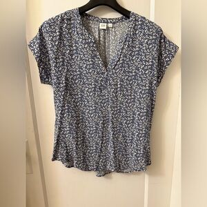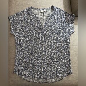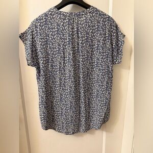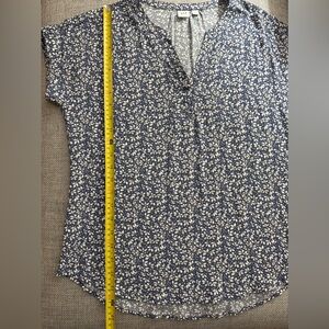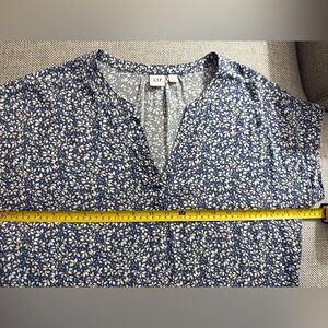 Generous-cut Sz Small measures approx 20 inches armpit to armpit, 24 inches mid-shoulder to hem. A lovely shade of blue fabric with small white flowers throughout.