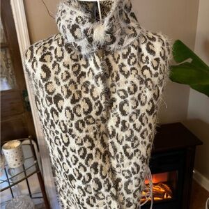Stylish leopard print scarf. Perfect for adding a chic touch to any outfit. Comes with its own bow like headband or neck warmer. Soft and warm. Measures about 34” as an infinity scarf.