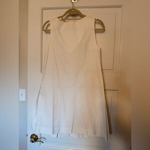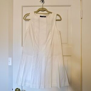 Crisp white chic sleeveless midi shift dress. Ideal for versatile styling.